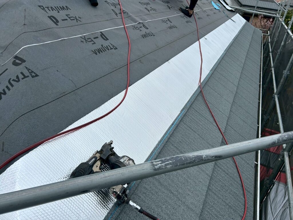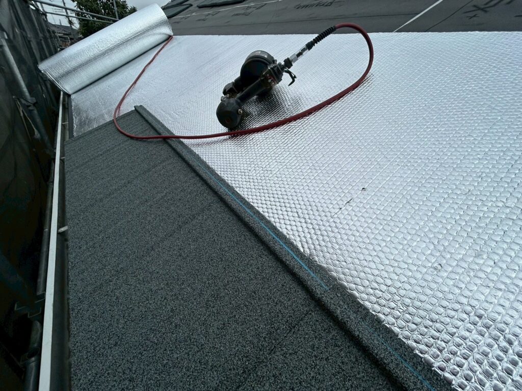防水シートを敷いた上からアストロフォイル、断熱効果は大きいです!